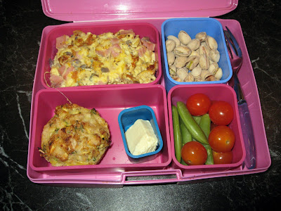 Har i det siste bare brukt den boksen med lokk. Fyller den med middagsrester, omelett eller noe annet fett og lettvint.:D