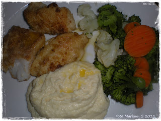 Blir kokte poteter til de som vil ha det og sellerimos til oss andre + selvsagt dampa grønnsaker og fløte/creme fraiche-saus.