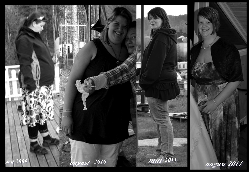 Her er bilder før og etter min foreløpige 25 kilos nedgang. :)