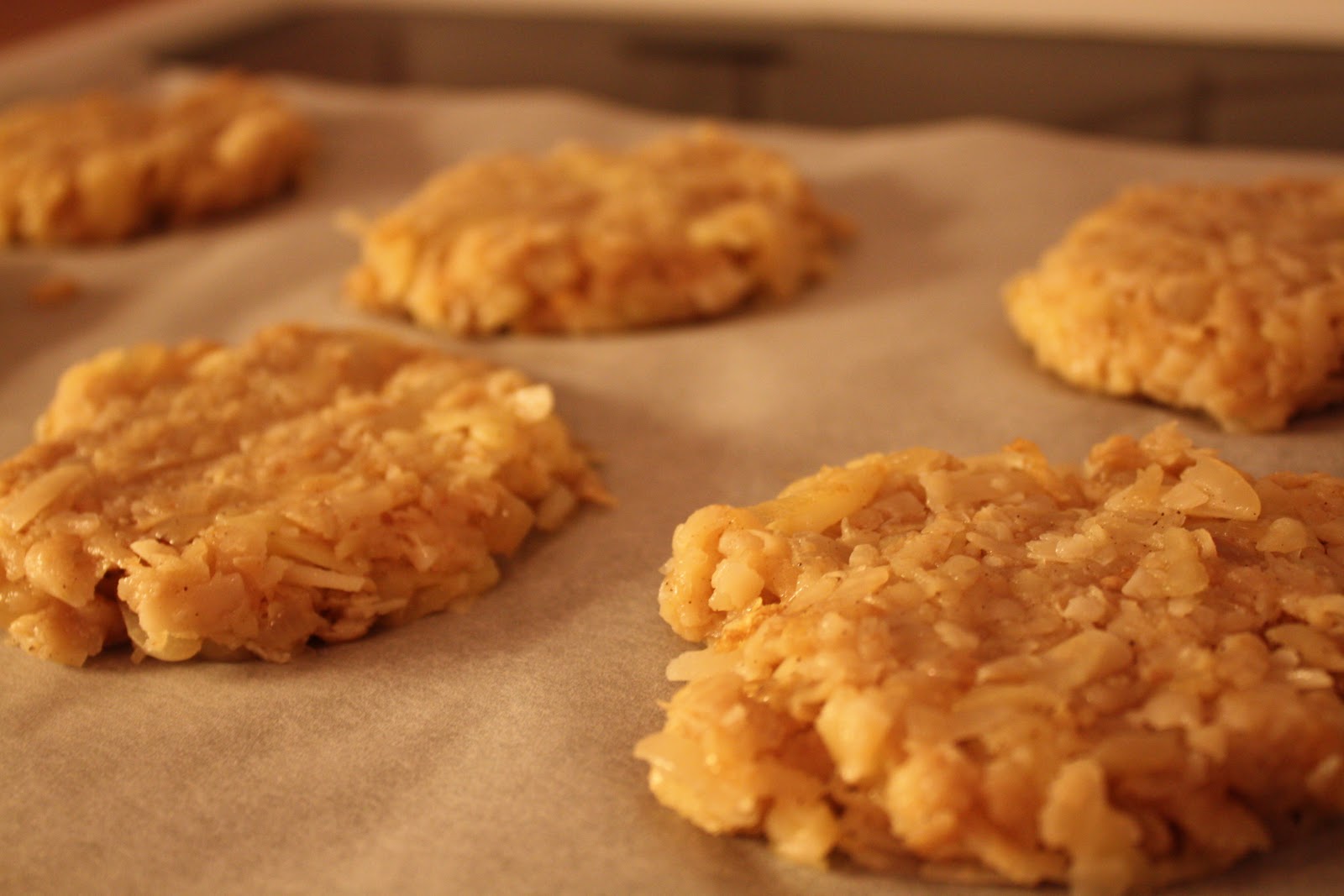 Avkjøl blandingen litt, og bland inn osten. Rull baller av massen som du klemmer flate på bakepapir. Sett i ovnen og la steke på 200 grader i 20 minutter, til røstiene er gyldne og sprø.