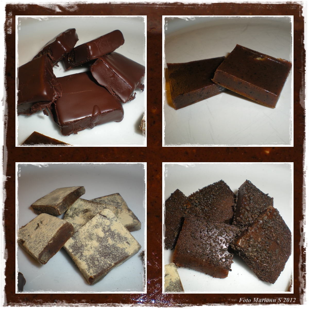 Eg har 'dyppa' karamellene i lakrisrotpulver, sjokolade og raw lakrispulver, grov. Og nokre uten 'trekk'.